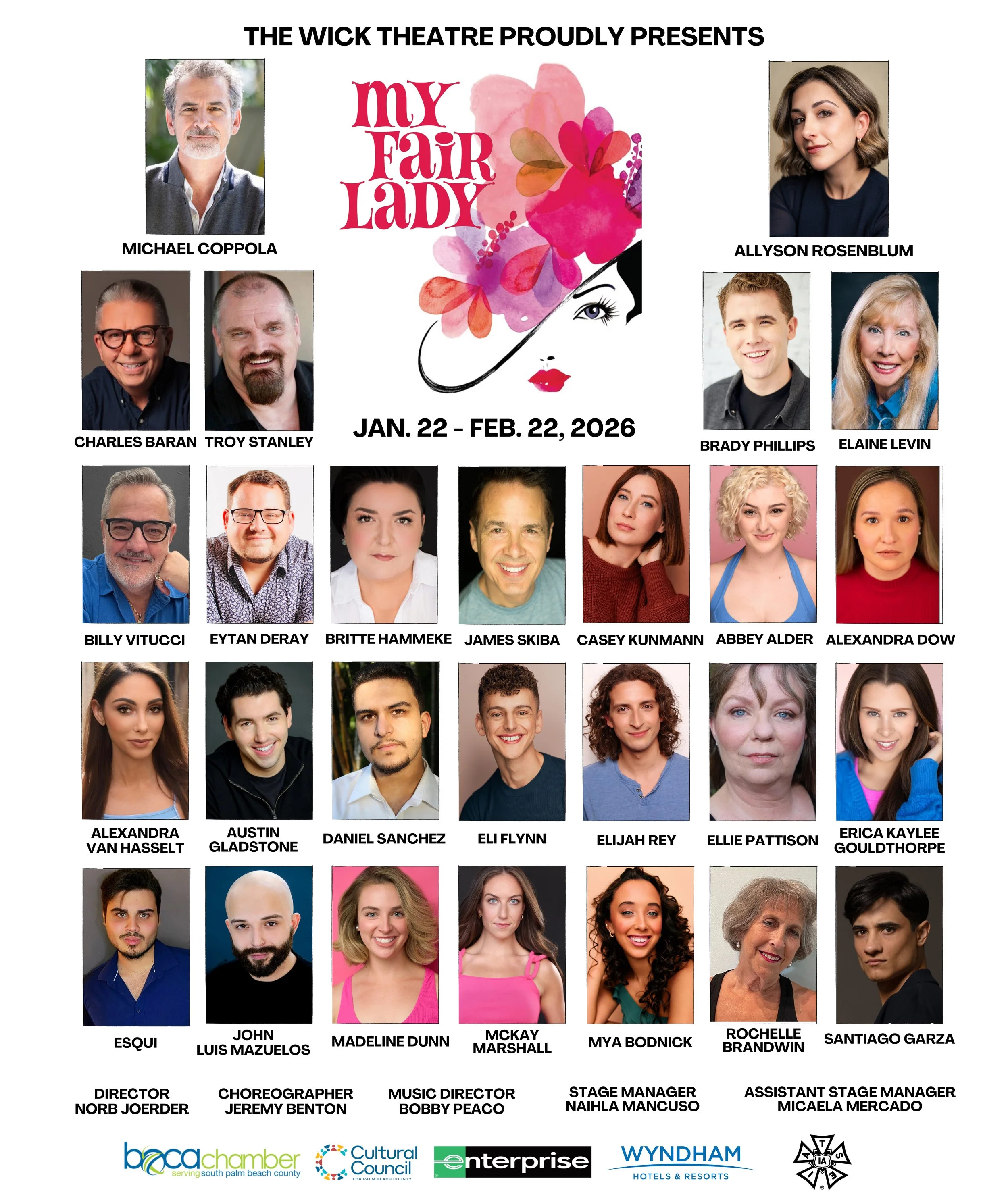 Directed by Norb Joerder, Choreography by Jeremy Benton, and Music Direction by Bobby Peaco. Starring ⭐ Michael Coppola as the brilliant (and exasperating) Henry Higgins and ⭐ Allyson Rosenblum as the unforgettable Eliza Doolittle, this lush production features a dazzling cast, sweeping romance, and Lerner & Loewe’s beloved score — including “Wouldn’t It Be Loverly?” and “I Could Have Danced All Night.”